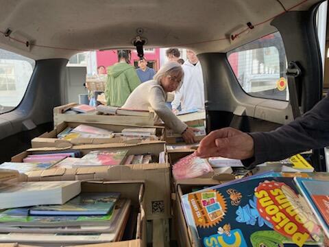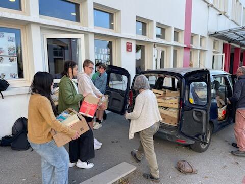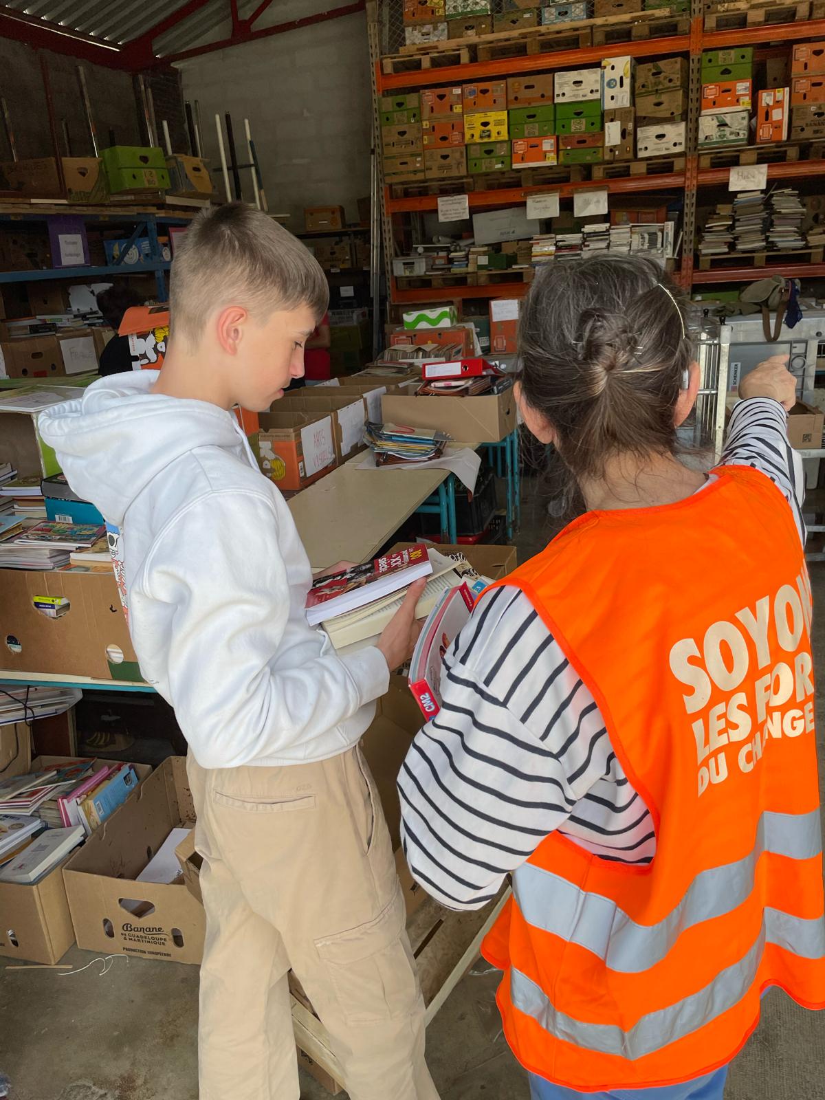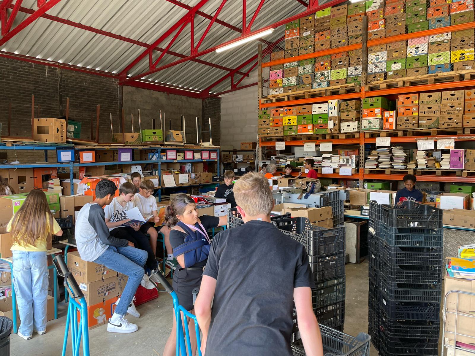 Suite à cette collecte, les éco-délégués du collège, encadrés par M. Boixel et M. Le Roux, se sont rendus dans les locaux du CCFD pour une visite au cours de laquelle ils ont été sensibilisés à l’économie circulaire autour du papier en lien avec le projet de solidarité : « 1 livre pour le CCFD ». Sur place, ils se sont rendus compte du travail et de l’engagement des bénévoles, ils ont pu les aider dans le tri des livres…un beau