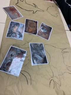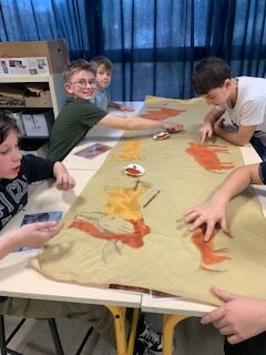 Les élèves ont donc appris à dessiner une fresque avec des outils primaires (bâton pour le pinceau, terre et eau pour la peinture etc…).