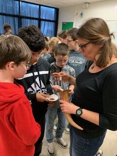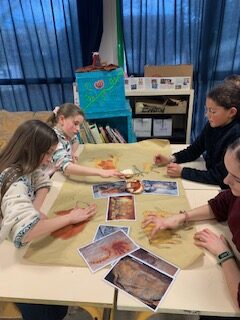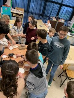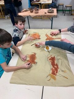 Dans le cadre de l’étude de la période préhistorique et après avoir visité une exposition au CDI sur la préhistoire en Morbihan, les élèves de 6ème continuent leur découverte de cette période riche. L’association Koruc qui est intervenue les a initiés à la peinture rupestre et aux matériaux utilisés à la préhistoire.