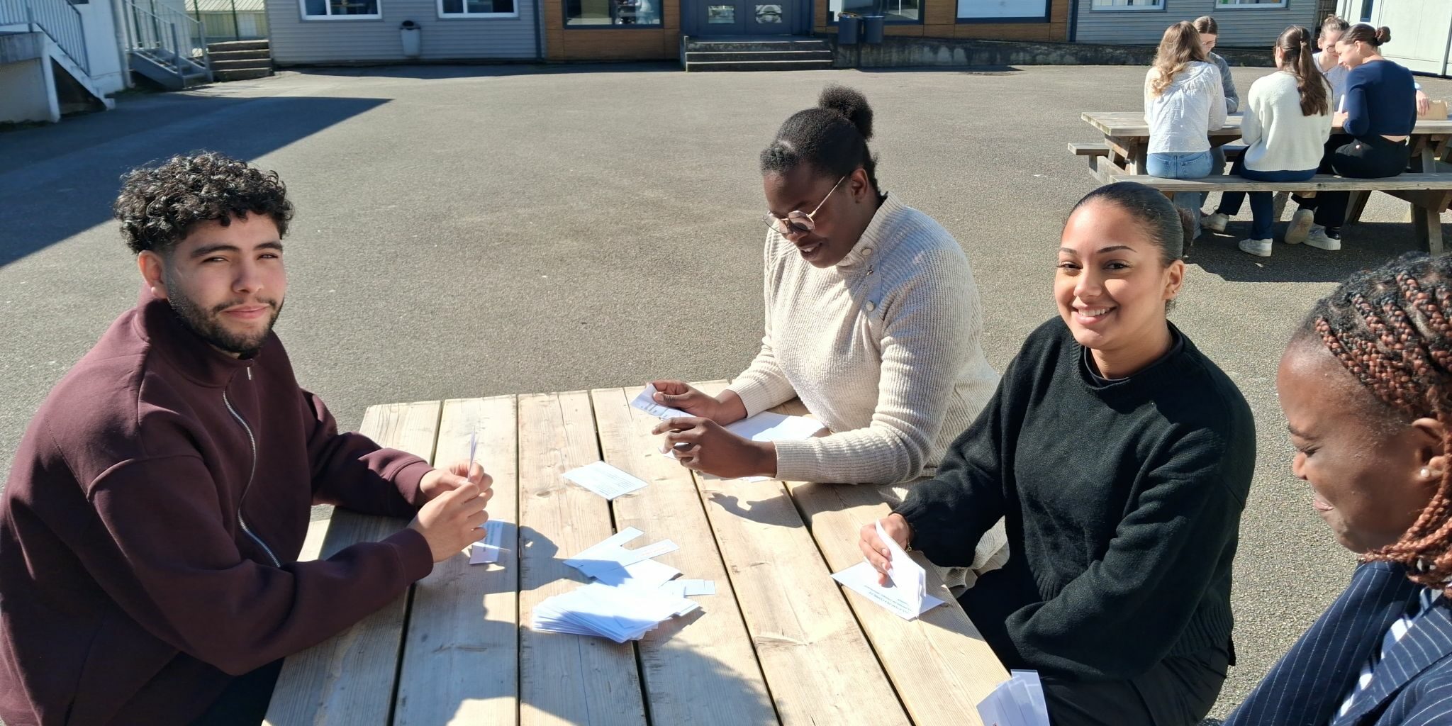 Cerise sur le gâteau : avec le beau temps, certains groupes ont choisi de s’installer dans la cour du Pôle Sup pour jouer au soleil ! Une manière conviviale et engageante d’apprendre autrement.