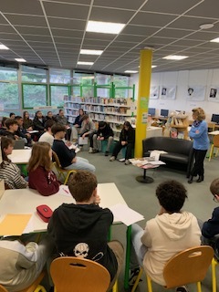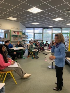 Mme Le Sauce est venue rencontrer chaque classe de 3ème du collège afin de raconter ces femmes et répondre aux questions des collégiens ; ce fut l’occasion de souligner également l’importance de la vérification des sources afin de contrer les négationnistes et l’importance de questionner sa propre famille…