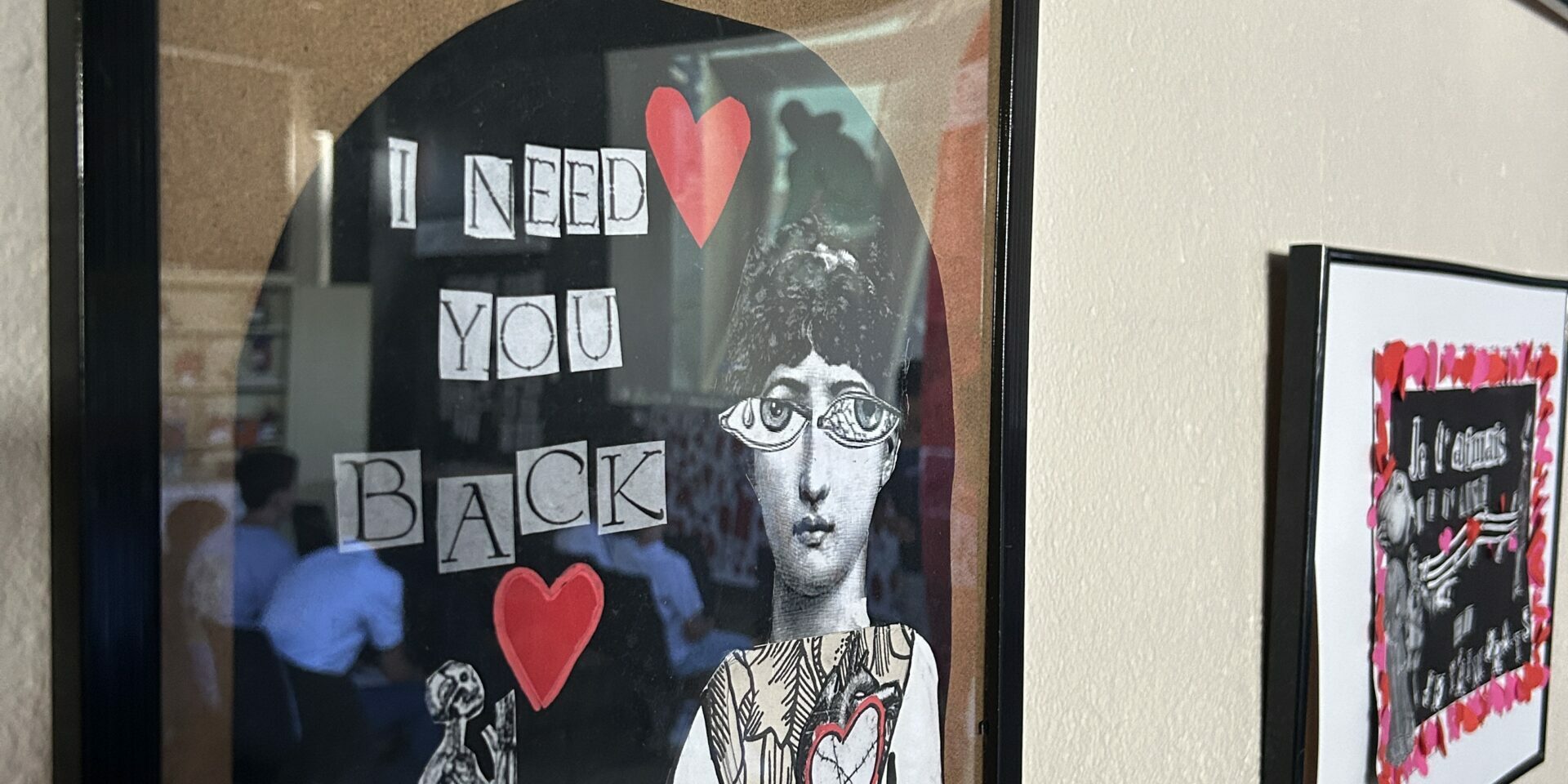 Pour la fin de l’année scolaire, les élèves de l’atelier d’art ont installé une exposition sur le thème de l’amour au foyer du collège.