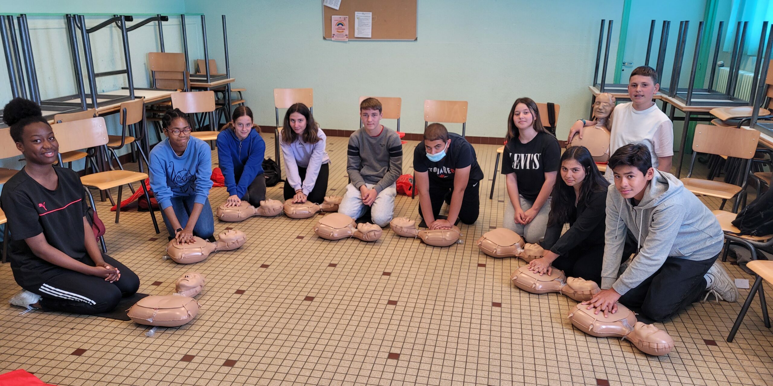 En juin, les élèves de 4ème ont suivi une formation PSC1 (Prévention et secours civiques de niveau 1) encadrée par l’association vannetaise de formation au secourisme.