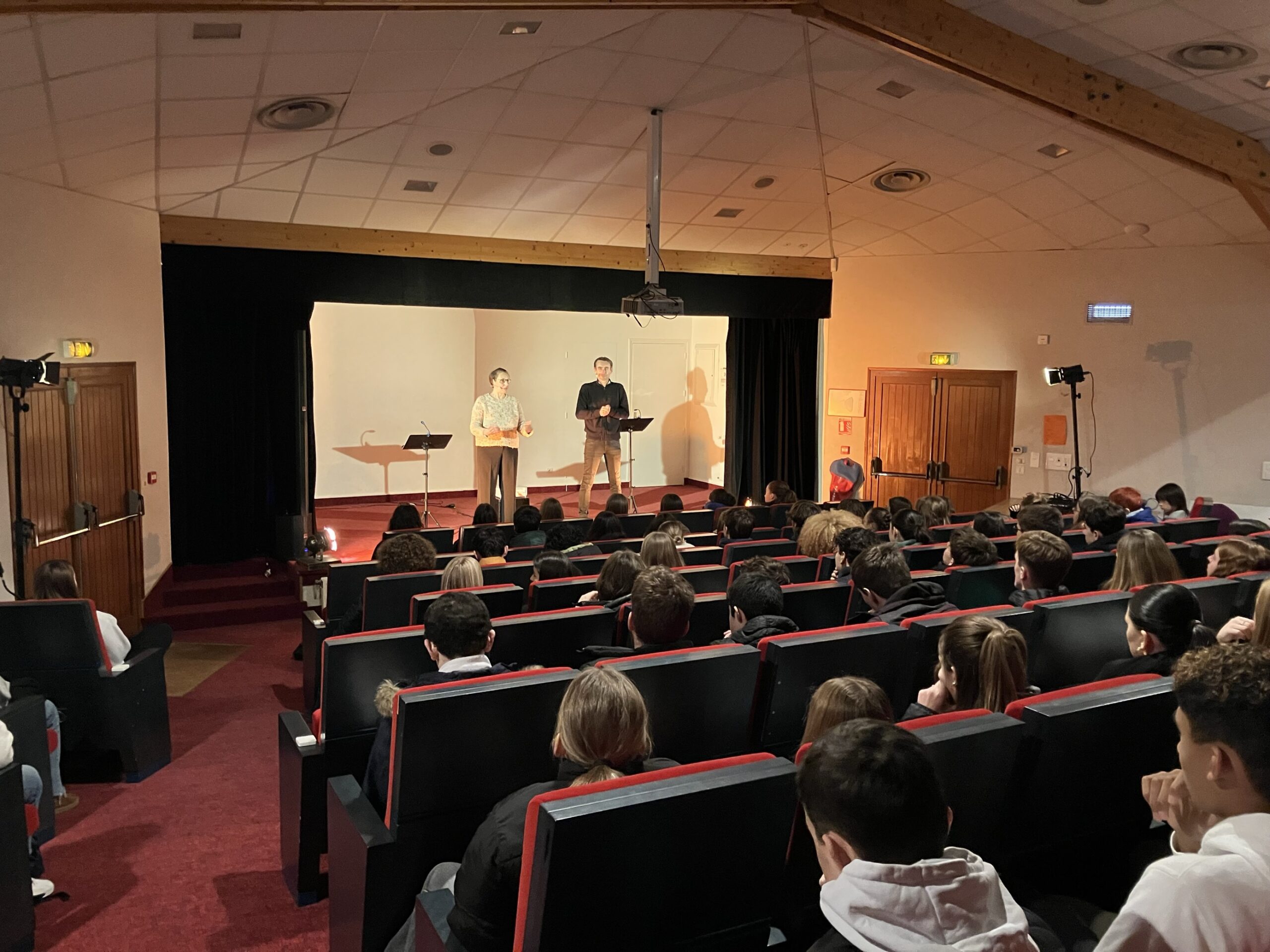 La compagnie de théâtre du Totem est intervenue fin novembre au lycée pour 2 représentations autour du harcèlement. Au programme, lecture de témoignages puis échanges sur plusieurs interrogations :