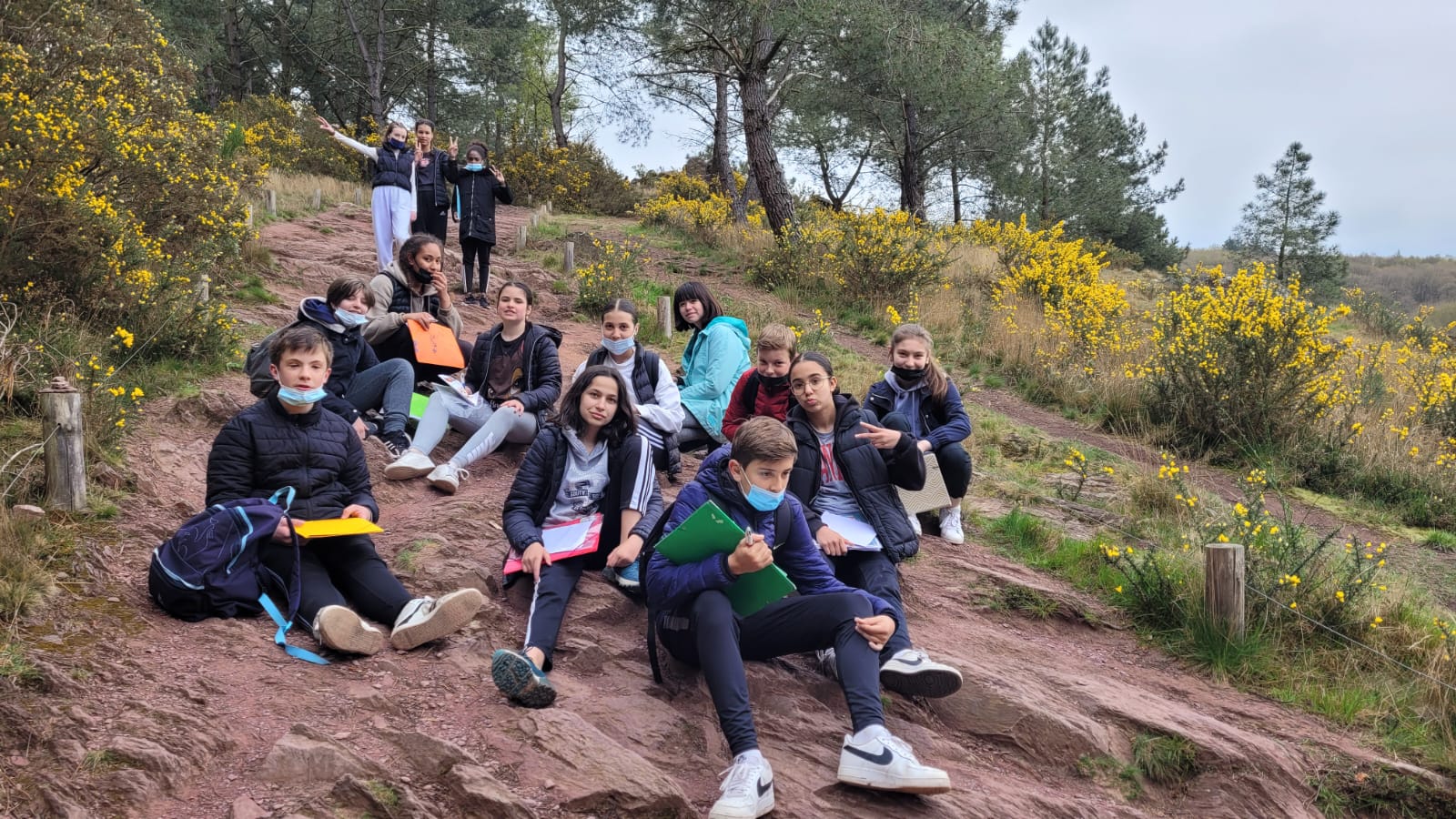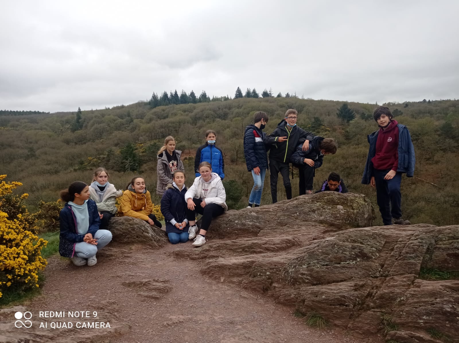 Puis, pour la dernière étape de notre matinée nous avons escaladé la pente pour nous rendre au rocher des faux amants .Nous avons profité de la vue splendide sur la vallée en écoutant l’histoire du Val sans retour: “Deux rochers posés l’un à côté de l’autre qui représentent Guyomard et une femme qu’il aimait pétrifiés et condamnés à ne jamais pouvoir.