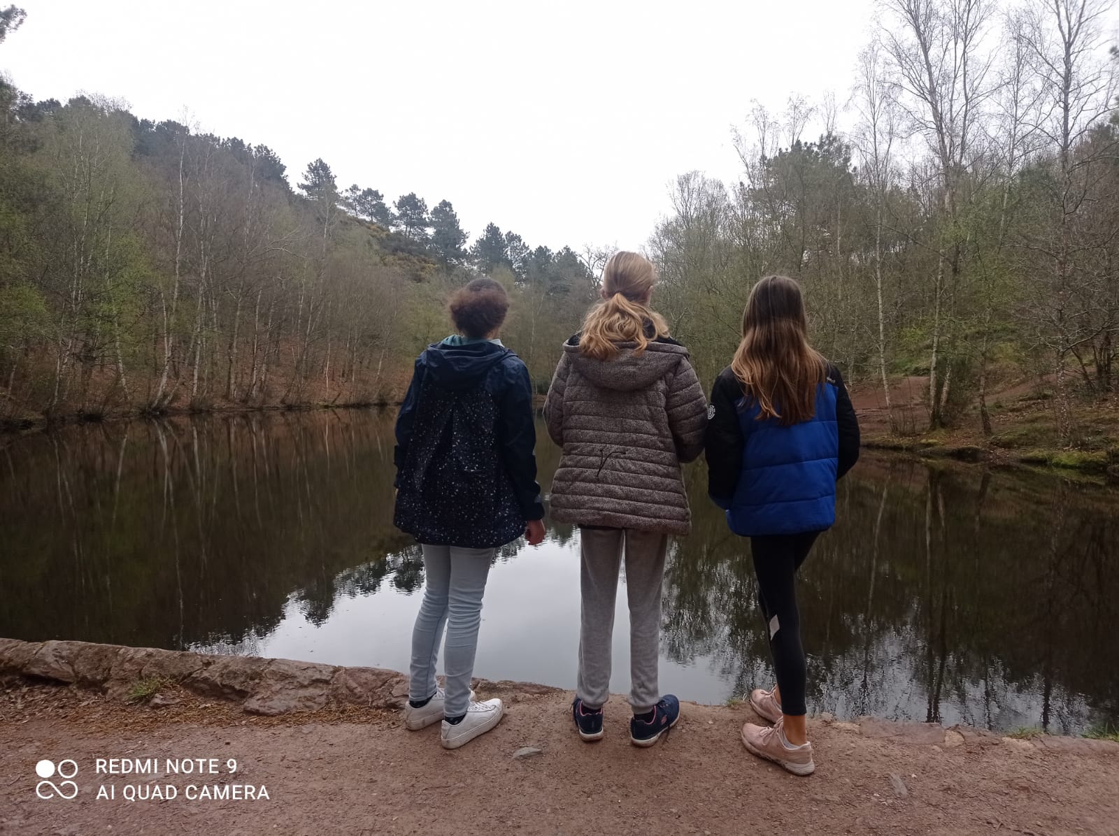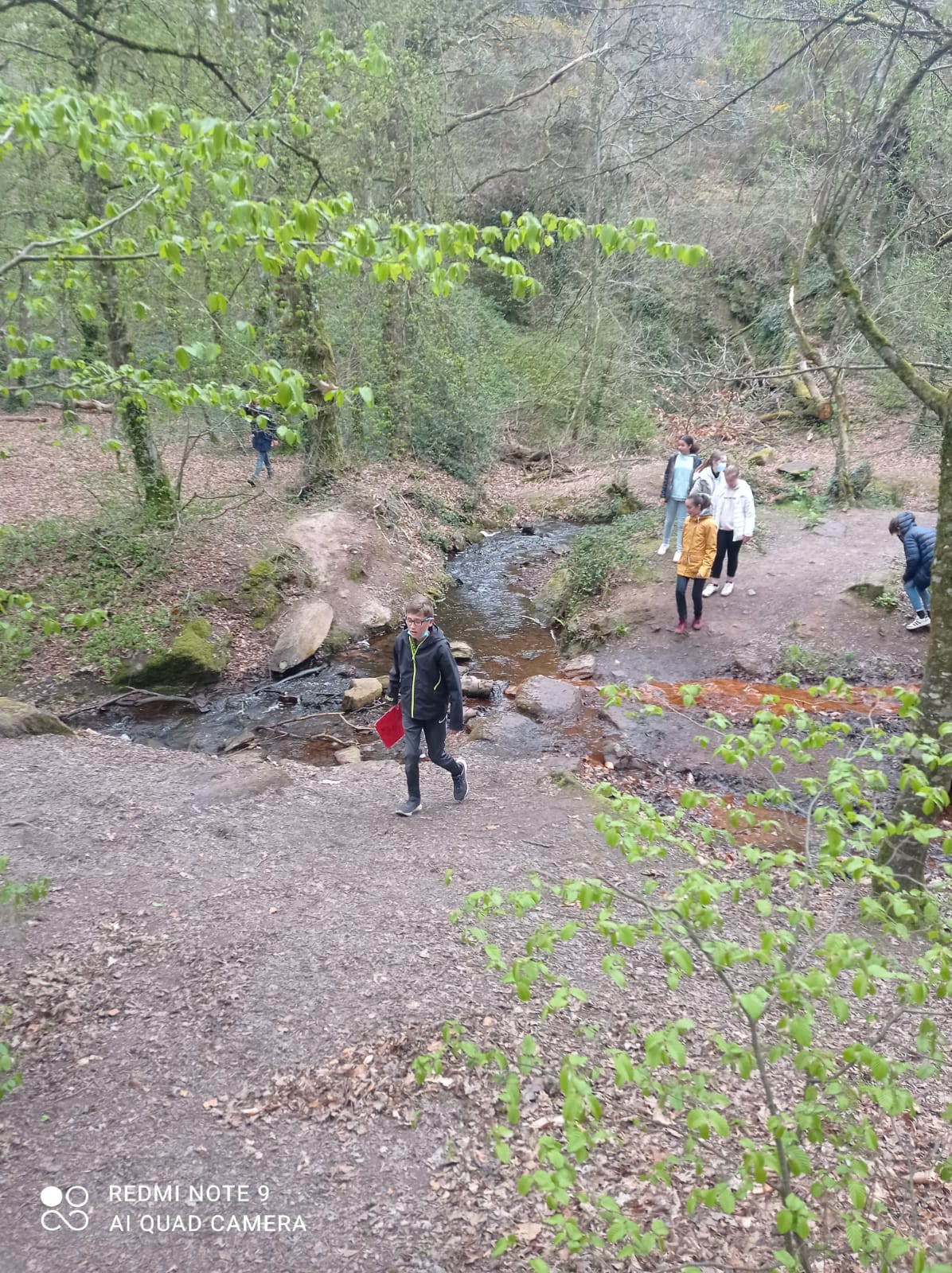 Après une petite marche , nous sommes arrivés sur les berges du Lac aux fées (le miroir aux fées) où on nous a conté la légende qui explique pourquoi toutes les eaux et la terre de Brocéliande sont si rouges :