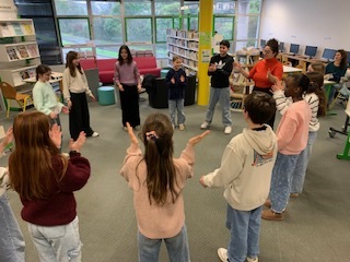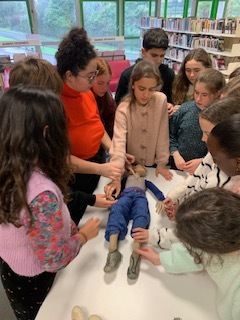 > Les élèves ont tout d’abord rencontré l’assistante metteuse en scène au CDI du collège. Les élèves ont échangé et se sont exercés à la dissociation et la manipulation de marionnettes. En effet, faire mouvoir des marionnettes de manière réaliste et à plusieurs personnes est un véritable défi !