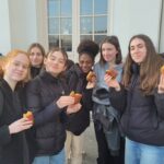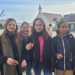 Tous les élèves du collège ont participé, par classe, à des ateliers visant à mieux connaître notre réseau d’établissements fondé par les Ursulines et plus particulièrement Sœur Angèle MERICI (le réseau « méricien ») et notamment son rayonnement international. Une vidéo de présentation leur a tout d’abord été proposée. Ensuite, par groupes de 6 élèves, ils ont pris part à différentes activités dont le but était de créer une carte de vœux qui sera expédiée à l’un des établissements du réseau « méricien ». Au total, le collège pourra ainsi contacter 16 établissements différents sur chaque continent. Les élèves ont par exemple dû reproduire une mosaïque représentant le visage de Sainte Angèle à partir de chacune des photos individuelles. Nous leur avons ensuite offert le traditionnel pain au chocolat pour le goûter et la journée s’est conclue par un défi collectif : écrire tous ensemble, dans la cour du collège « 100 ans », en référence à l’anniversaire fêté cette année au sein de l’Ensemble Scolaire Notre Dame, les 100 ANS d’existence du collège Notre Dame le Ménimur, établissement fondateur de notre ensemble scolaire. Un grand merci à Tilio, élève de quatrième, pour ses talents de pilote de drone !