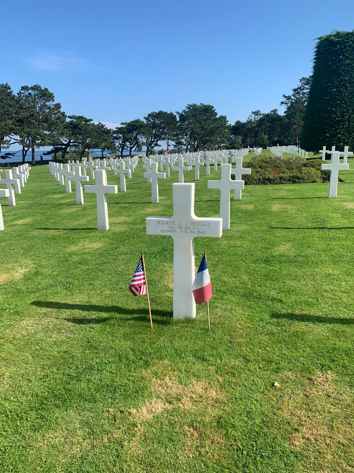 Ensuite, direction Longues sur Mer, pique-nique sur Omaha Beach et randonnée jusqu’au cimetière de Colleville sous le soleil.