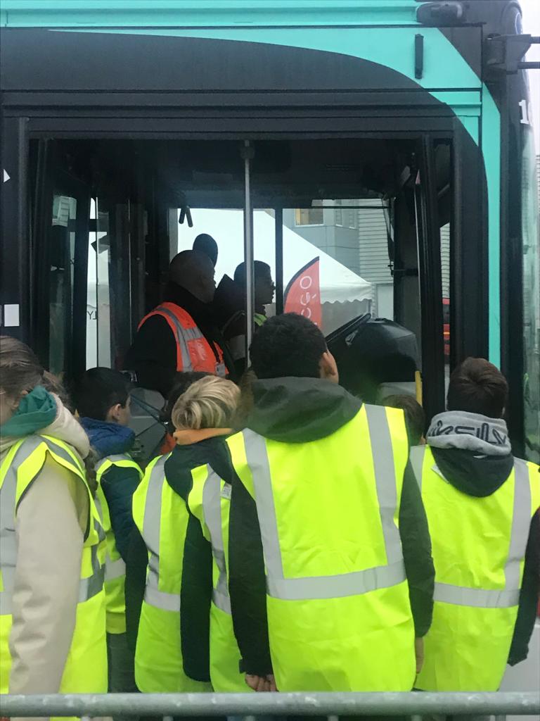 Ils ont pu aborder le thème de la sécurité dans les transports en commun avec un policier et celui des dangers des angles morts des bus et cars. Ils ont aussi simulé l’évacuation, en situation réelle, d’un car enfumé accompagné d’un pompier et celui d’un car qui se renverse grâce à des véhicules pédagogiques.