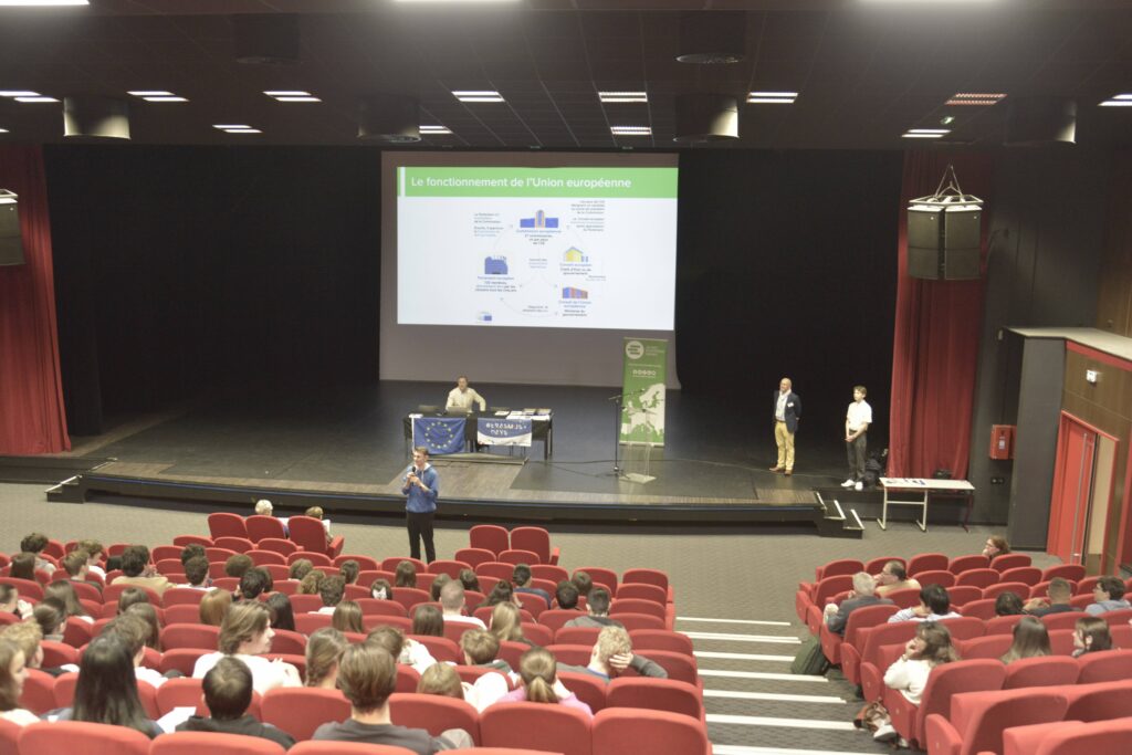 Mercredi 15 octobre, 17 élèves de Terminale Générale se sont glissés dans la peau de 𝗱𝗲́𝗽𝘂𝘁𝗲́𝘀 𝗲𝘂𝗿𝗼𝗽𝗲́𝗲𝗻𝘀 le temps d’une journée.
