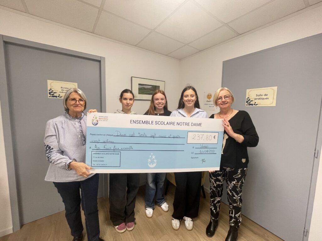 En janvier, des élèves du CESC (comité d’éducation à la santé et à la citoyenneté) ont organisé plusieurs ventes de crêpes, au profit de l’association « Faire Face Ensemble ». Vendredi 10 avril, elles ont remis un chèque à l’association. Bravo pour cette action solidaire !